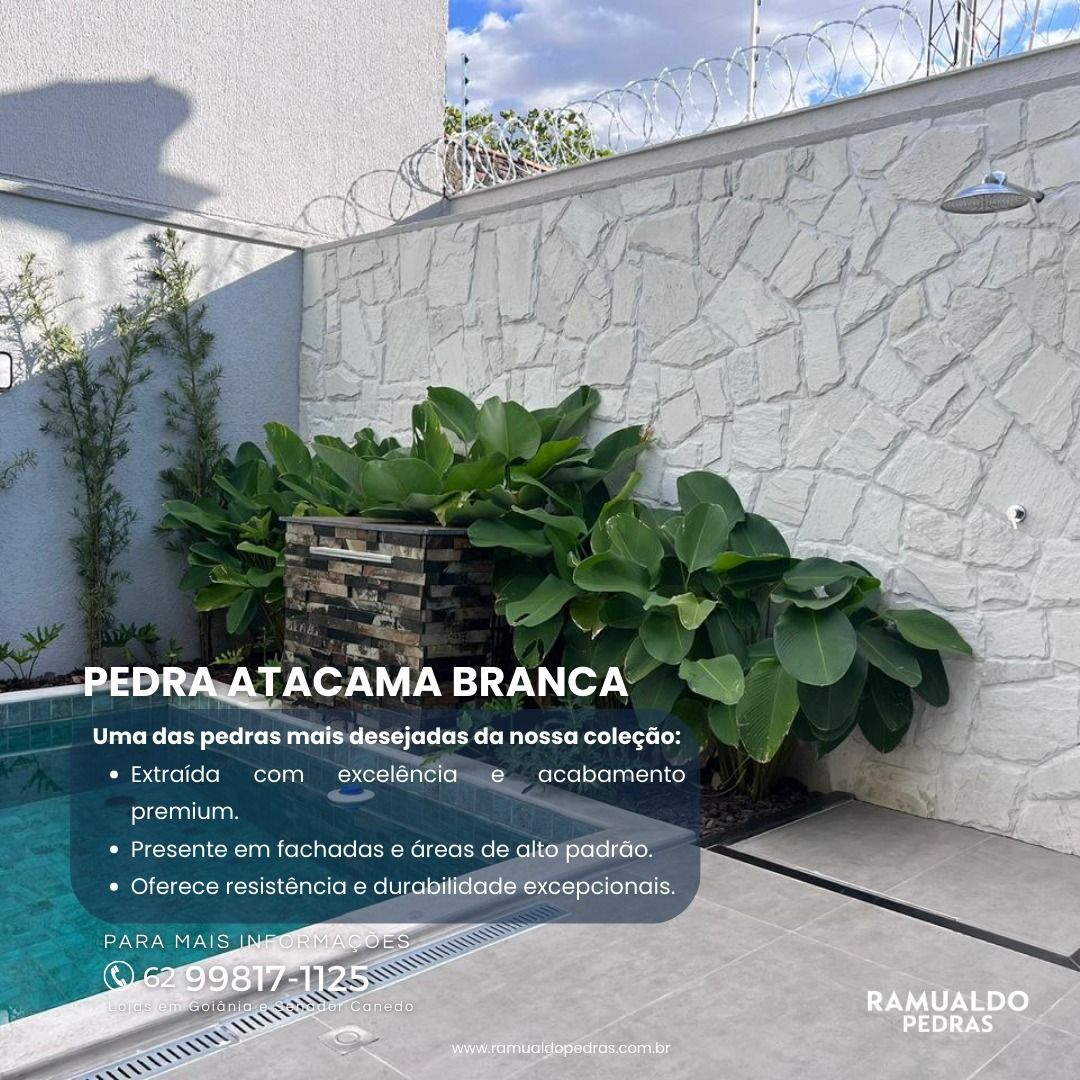 Se você está buscando o melhor revestimento para área de lazer com piscina em Goiânia , a pedra Atacama é uma das opções mais procuradas por arquitetos e clientes que valorizam beleza, segurança e durabilidade. Neste artigo, você vai entender por que a pedra natural Atacama para piscina é uma excelente escolha e como ela pode transformar completamente seu projeto. 📍 Por que escolher Pedra Atacama em áreas de lazer? A pedra Atacama natural se destaca por unir estética sofisticada com alta resistência, sendo ideal para ambientes externos como: Áreas de lazer Piscinas Espaços gourmet Jardins e fachadas Além disso, ela é muito utilizada em projetos em Goiânia, Senador Canedo e região , devido à sua adaptação ao clima quente. ☀️ Pedra Atacama esquenta? (Conforto térmico) Uma das principais dúvidas de quem procura pedra para piscina que não esquenta é sobre o conforto térmico. A pedra Atacama possui: Baixa retenção de calor Superfície confortável para andar descalço Excelente desempenho sob sol intenso 👉 Por isso, é muito indicada para quem busca pedra para borda de piscina em Goiânia .